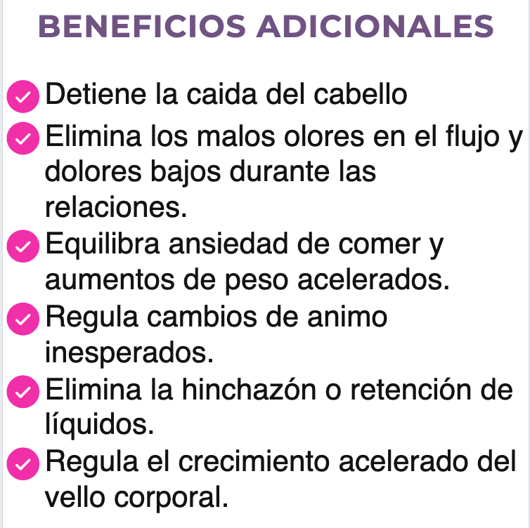 Su fórmula natural actúa desde la raíz: desintoxica el útero, equilibra tus hormonas y reduce inflamaciones, ayudando a disolver quistes y miomas de manera progresiva.